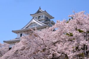 名古屋城:春は歴史ある城郭が華やかな桜景色に包まれる人気の季節です。城内にはソメイヨシノをはじめとした約1,000本の桜が咲き誇り天守や金のしゃちほことの優美なコントラストが訪れる人々を魅了します。桜の名所として名高い名古屋城は春の訪れを感じる絶好のスポットです。-